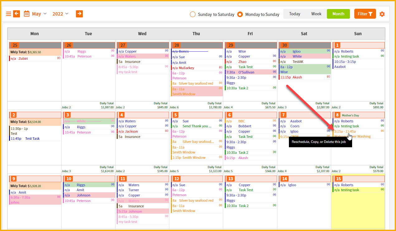 The second way to put a job on hold is to click the job's appointment time from any calendar screen.