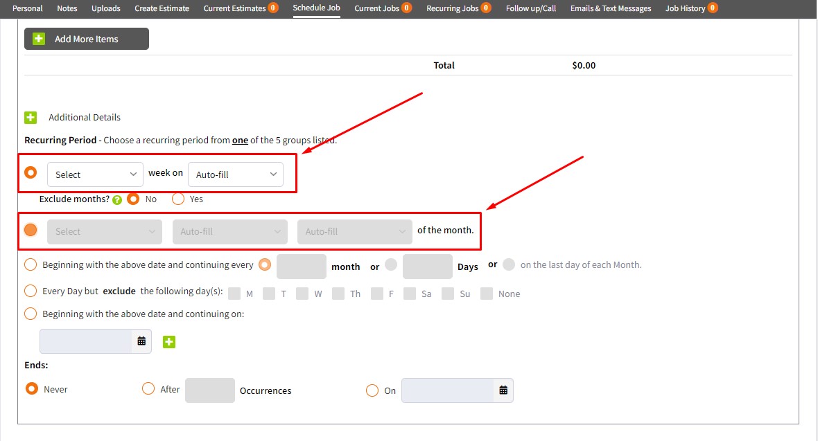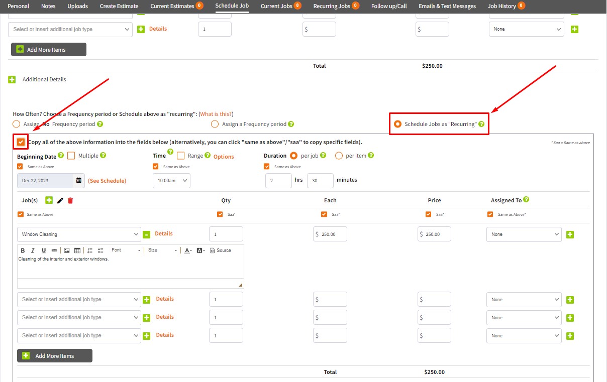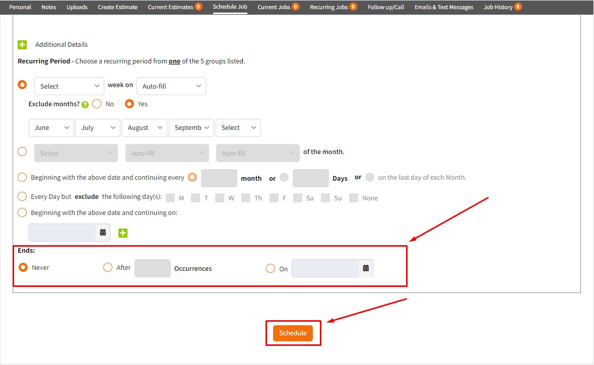 - Go to any customer profile and click on the "Schedule Job" subtab.