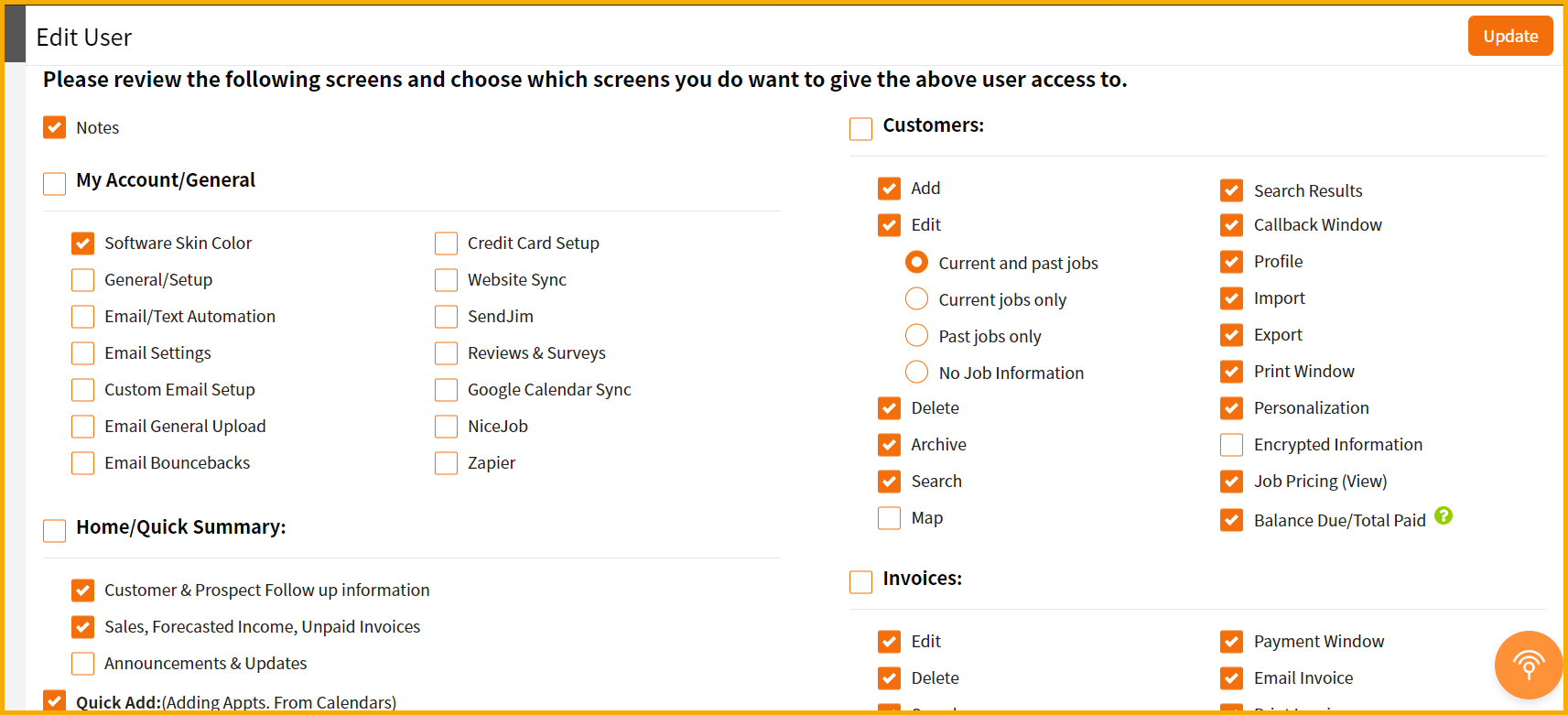 Editing the appointment allows the user to make edits to the appt itself like changing the job type/item, adding some job details to the job type, etc. If the sub-user you're creating does upsell or just needs to make edits to job types then tick the box under "Edit". This will provide the sub-user an "Edit" button in the app so they can edit appointments.