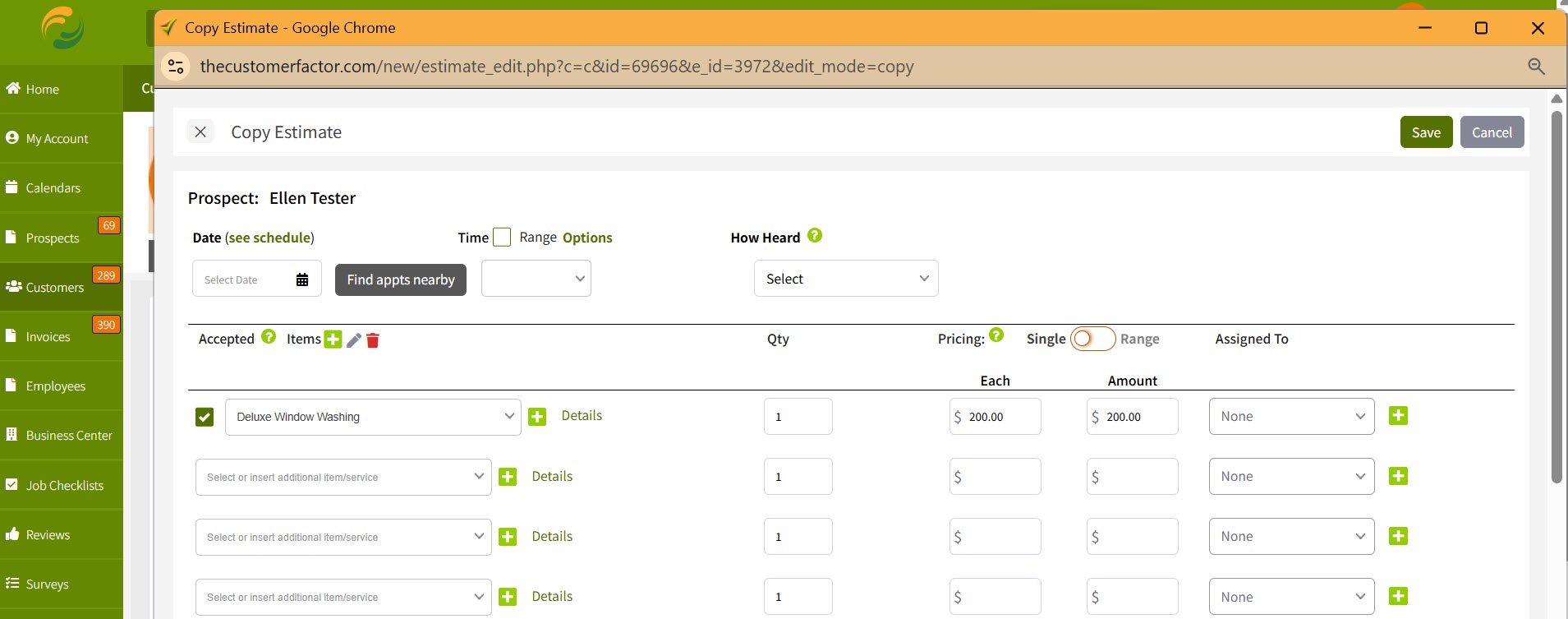 You can then enter the new date (for example, the date you’re copying it to), make any necessary updates to the job type or pricing, and click the Save button in the top right corner. Once saved, you’re all set.