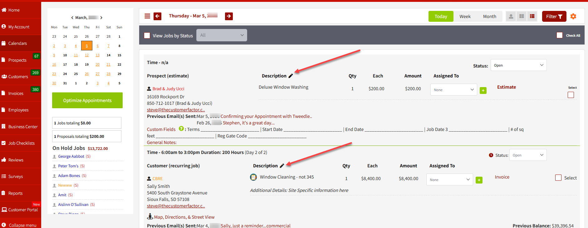 You have full control over whether estimates display on the calendar or not so it depends on how you treat estimates. Some users want them on the calendar because they are considered appointments where the user has to visit the home or business and provide the estimate in person. Other users do estimates on the phone and don't need any estimates on the calendar. Or it might be half and half. Regardless, it's easy to handle.