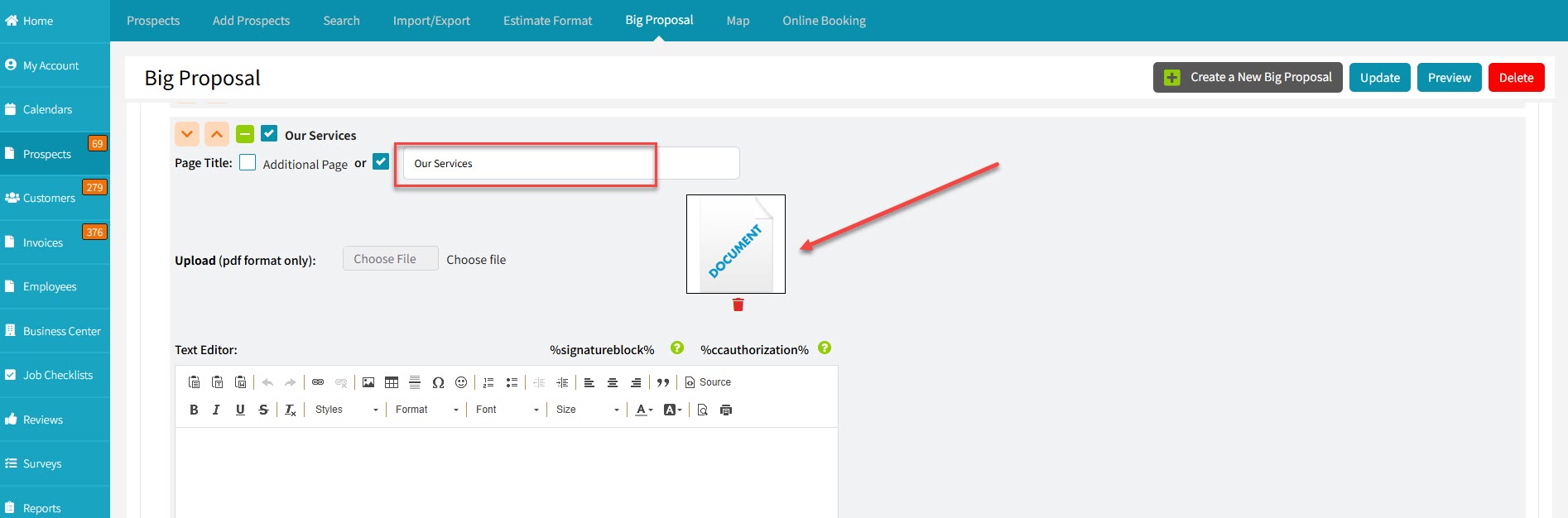 How To Upload a PDF (or other doc) To a Page in The Big Proposal