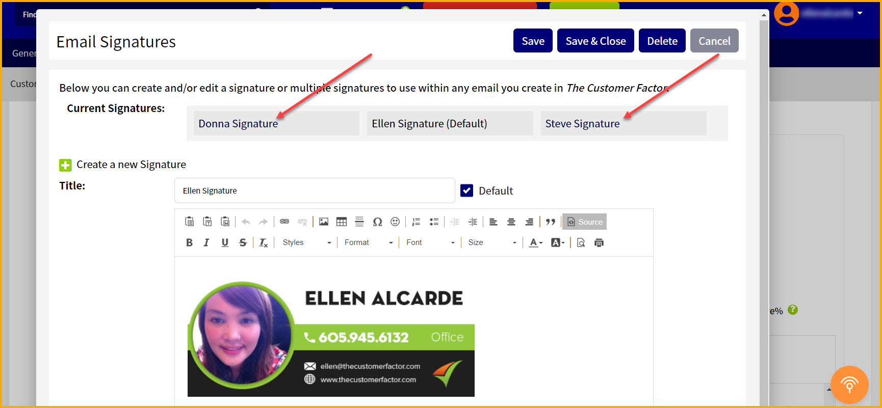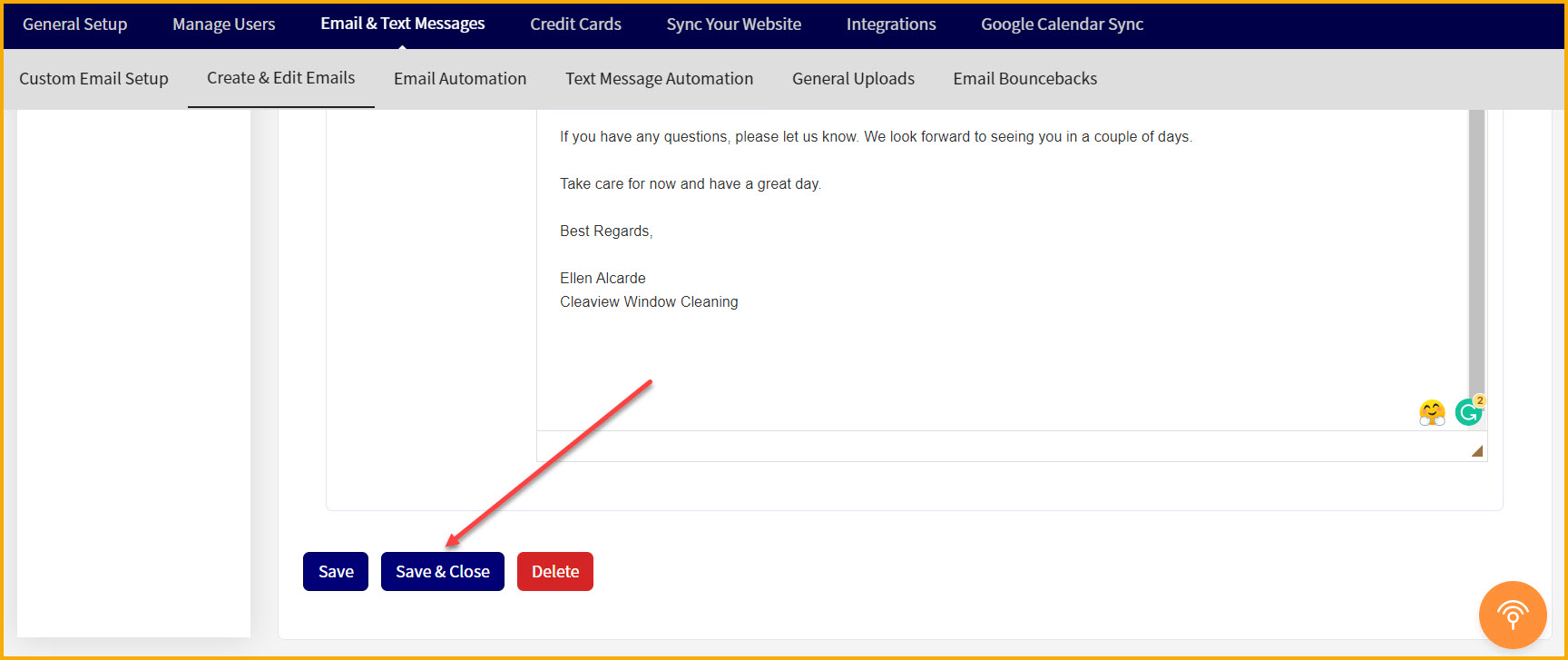 And to add the signature to the email, click "Save & Close" at the bottom of the email template.