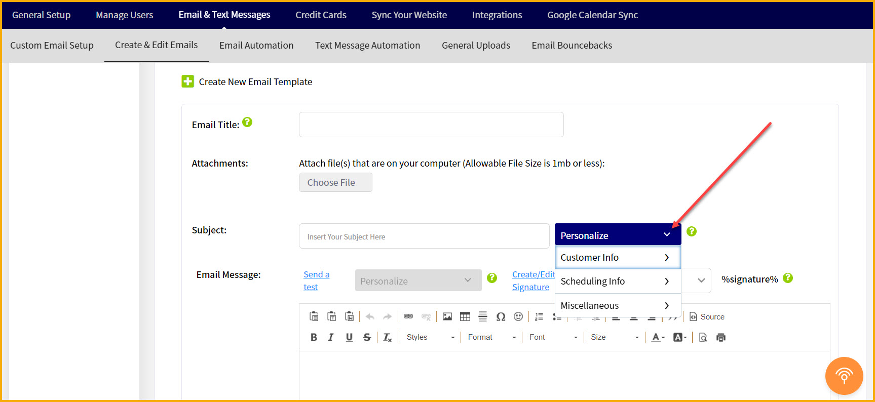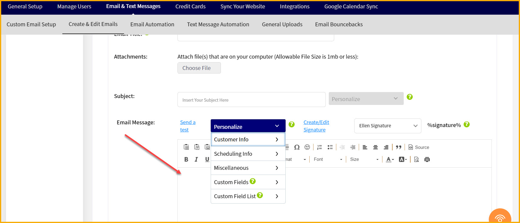 Same with the "Message" field, make sure the cursor is in the message area to make the "Personalize" dropdown active above the message area. Wherever your cursor is in the message field is wherever your token choice will get inserted that you select in the "Personalize" dropdown.