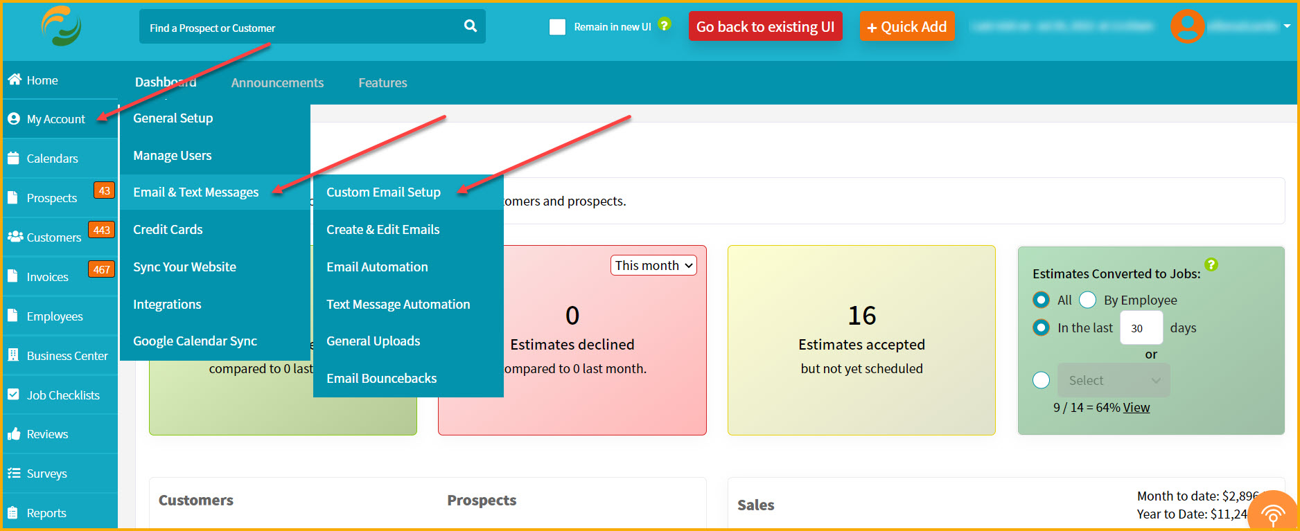 3.) If you're setting up Gmail or Outlook/Hotmail, then all emails sent will end up in your "Sent" folder. So you'll have a nice record of everything sent. Of course, you can also access an email history area in each prospect or customer profile screen, and you can always send a bcc email to yourself (recommended at least for estimates and invoices), but this gives you an additional way to go back and see what was sent since it's in your own "sent" folder. Again, this is only when setting up Gmail and Outlook/Hotmail. It's not possible to route emails through your "Sent" folder if you're setting up an email address like bubba@mywebsite.com on the custom email screen.