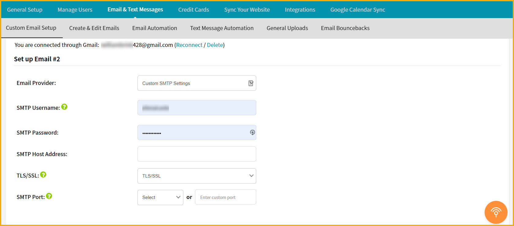 The second option is Custom STMP Setting. Select that dropdown and enter all the information. The "SMTP username" is your email address and the "SMTP password" is the password for your email address. The TLS/SSL can be left as it is and the SMTP port will typically be 587 so that should be fine also.
