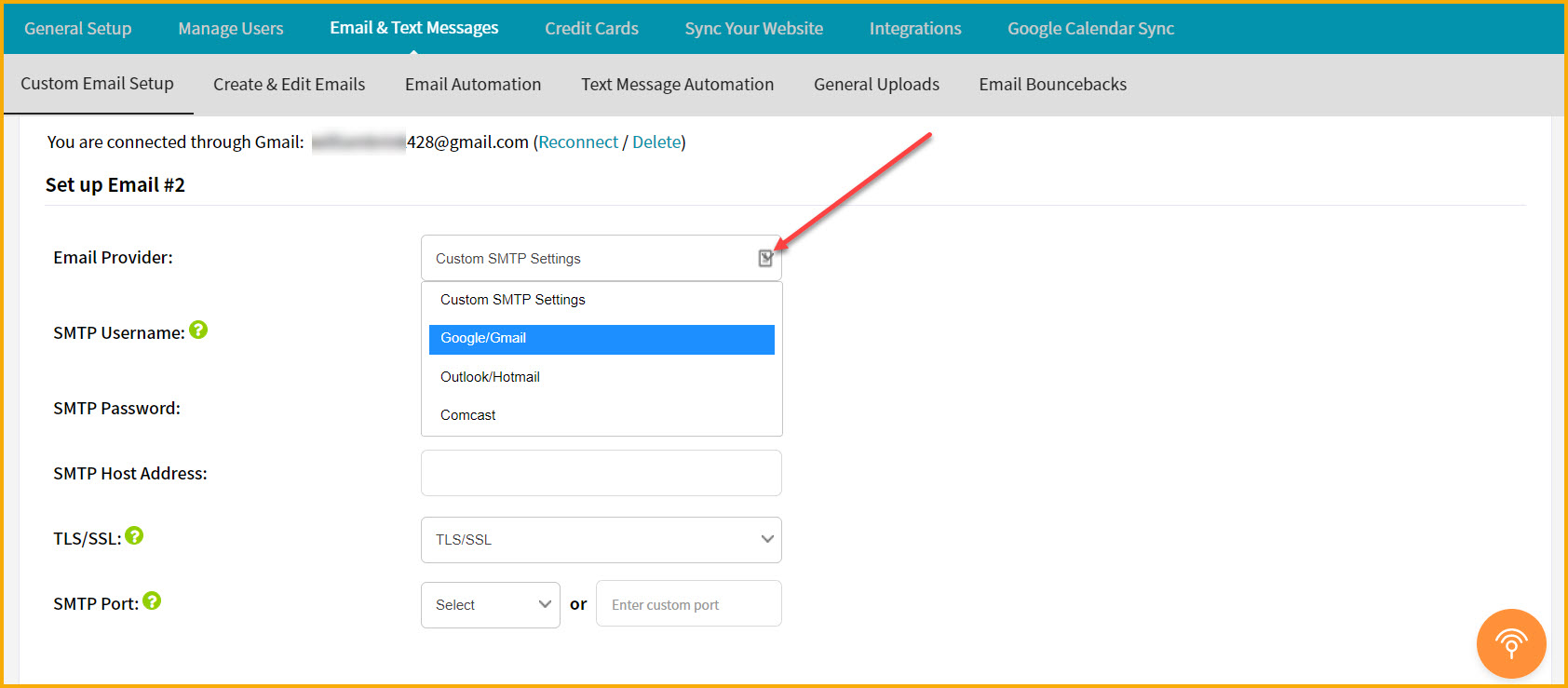 Select Google/Gmail in the email provider dropdown.