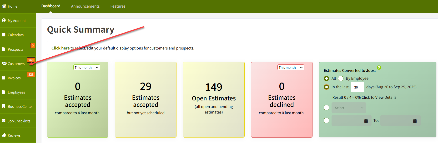 - Click the total number of customers at the top left of the screen (it will say "View All" when you hover over it).