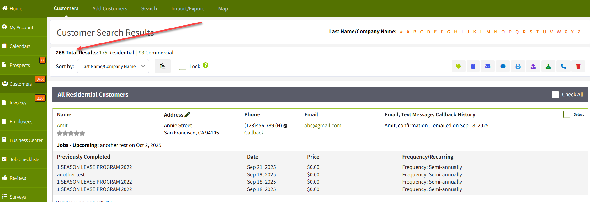 - Do a customer search for that group. For example, search for customers who haven't had work done in at least 6 months.