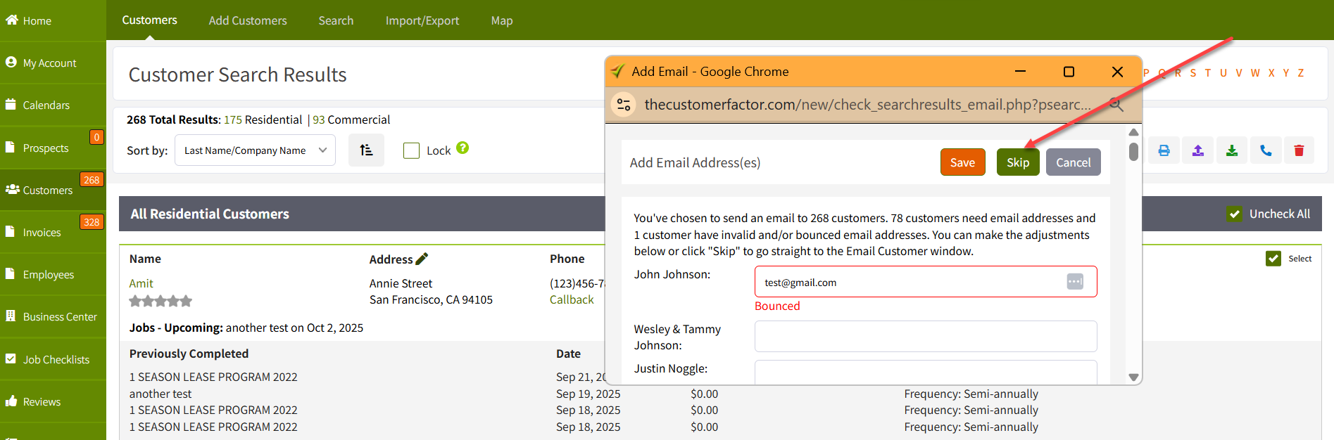 An "Add Email Address(es)" window will pop up, asking you to add email addresses for any customers who don't have one.