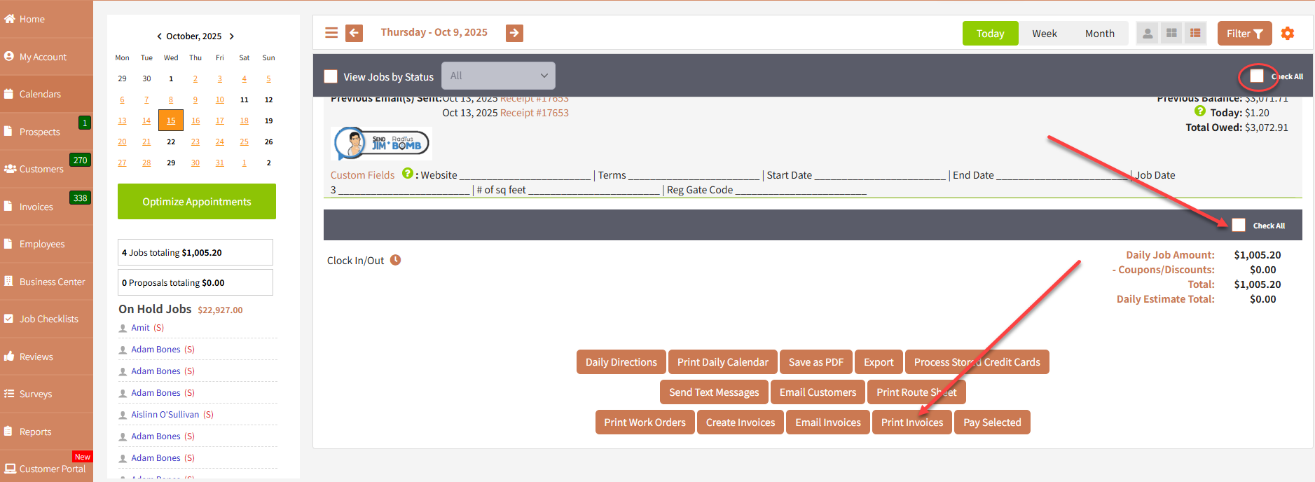 - If you have jobs scheduled for the day, utilize the check-all box located on the right.