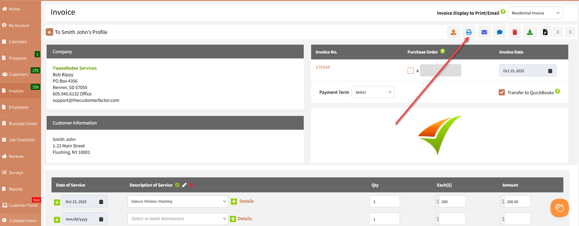 Efficiently printing invoices within The Customer Factor is a straightforward process, offering multiple options to suit your preferences. Here's a step-by-step guide: