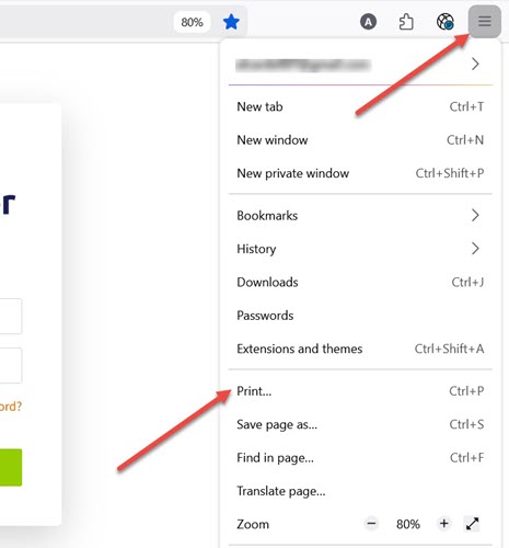 Click the 3 horizontal lines at top right and click the "Print" option" as shown: