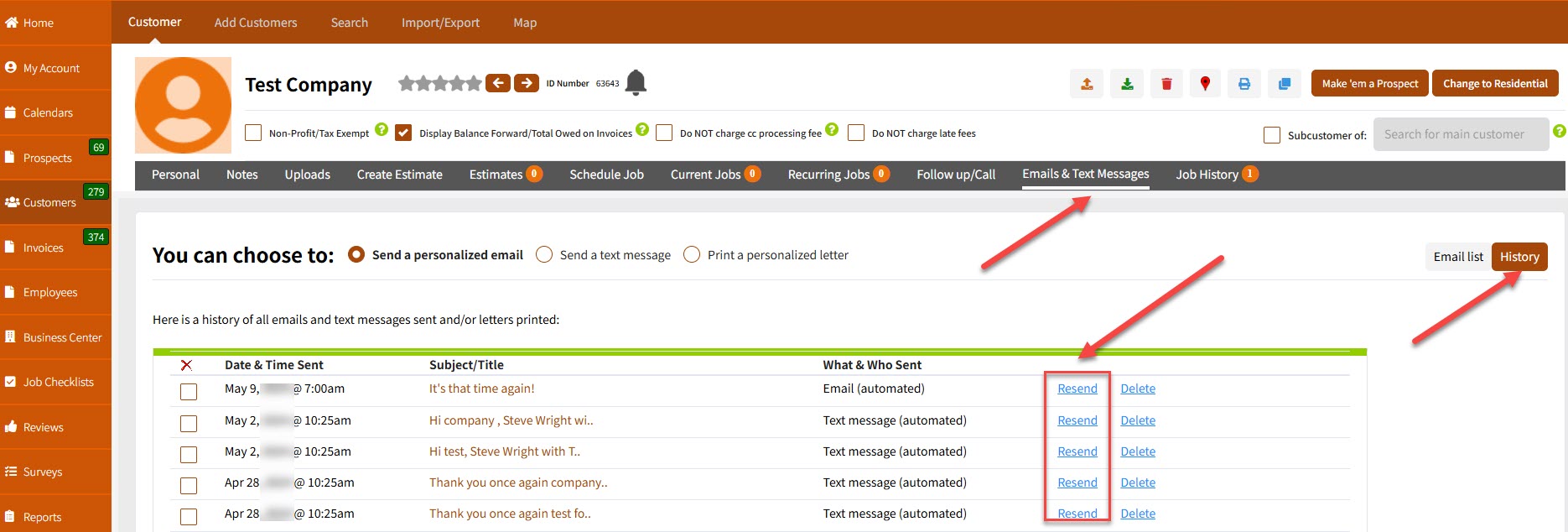 We’ve just released a new Resend feature that makes it quick and easy to resend previously sent emails or text messages instead of having to back into the invoice or estimate to resend or recreate the message from scratch.