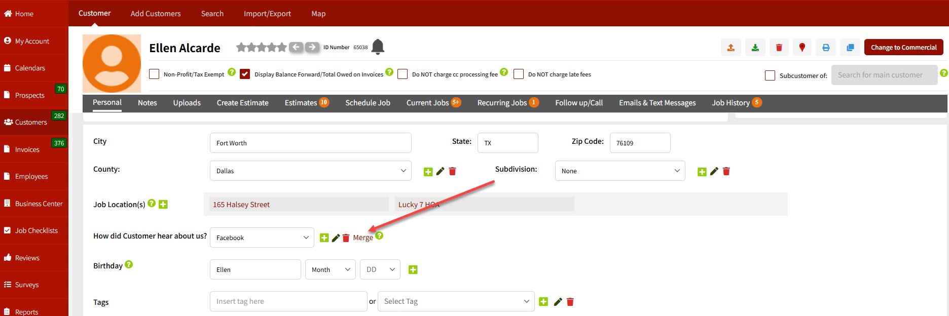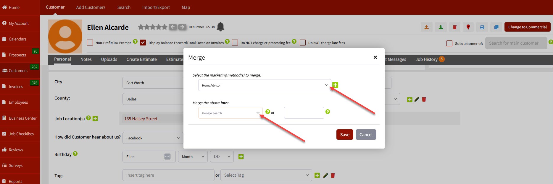 In order to merge the marketing methods, which is where a prospect or customer heard about you, please go into either a prospect or customer profile in your account, scroll down to Marketing Methods, and you'll see a merge link on the right.