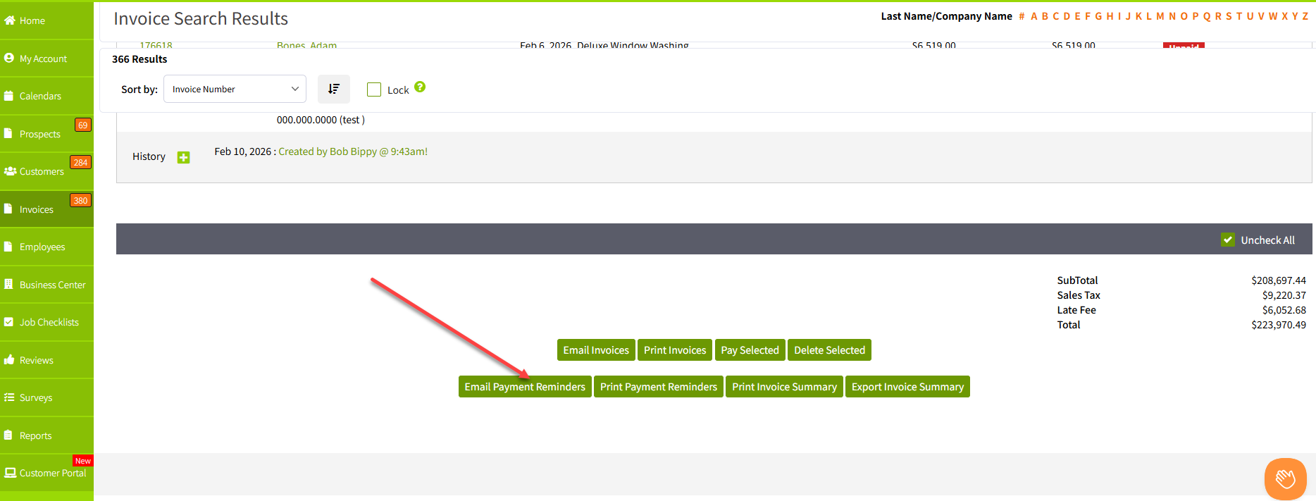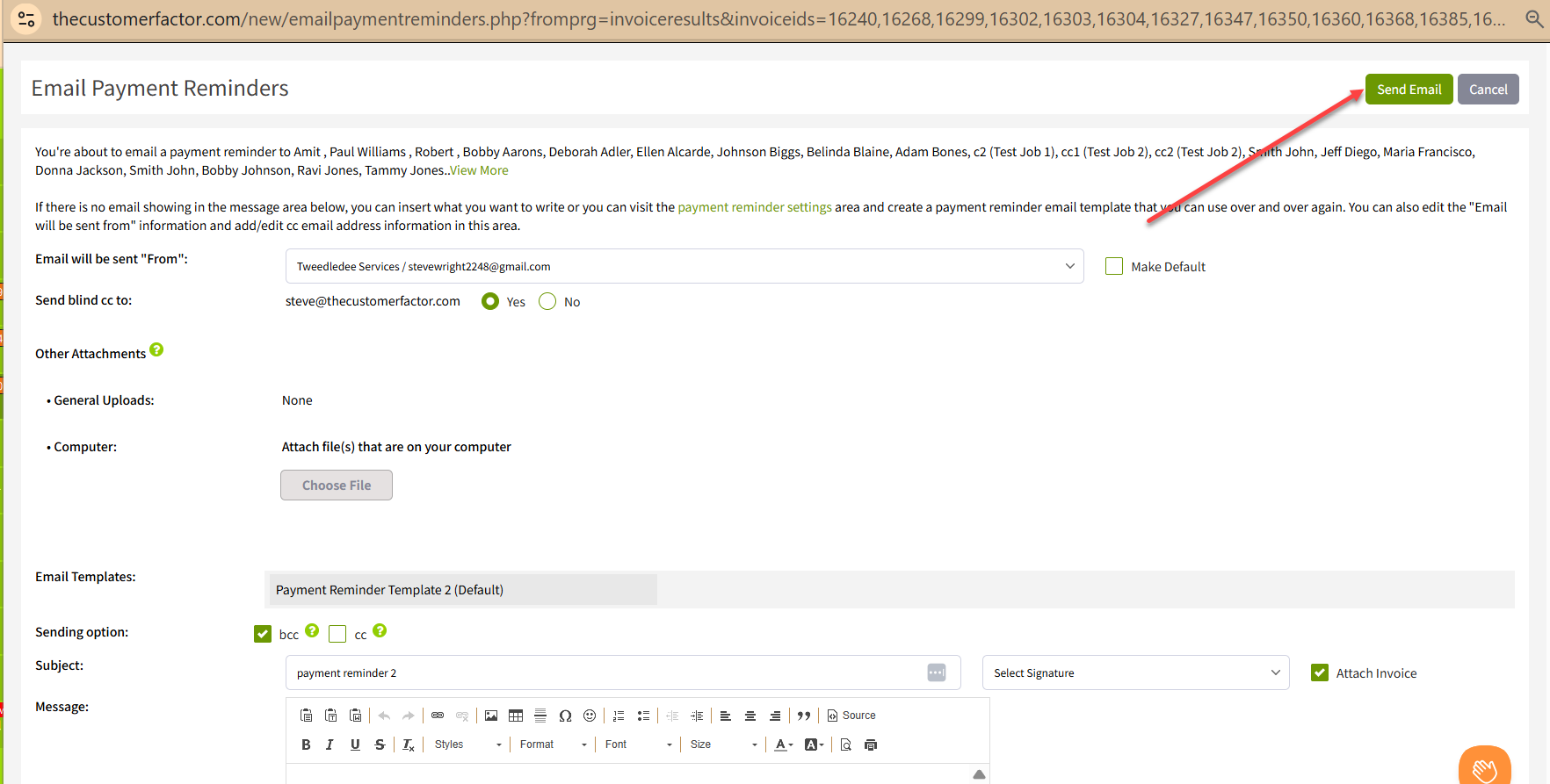 Scroll at the bottom of the screen and click the "Email Payment Reminders" button.