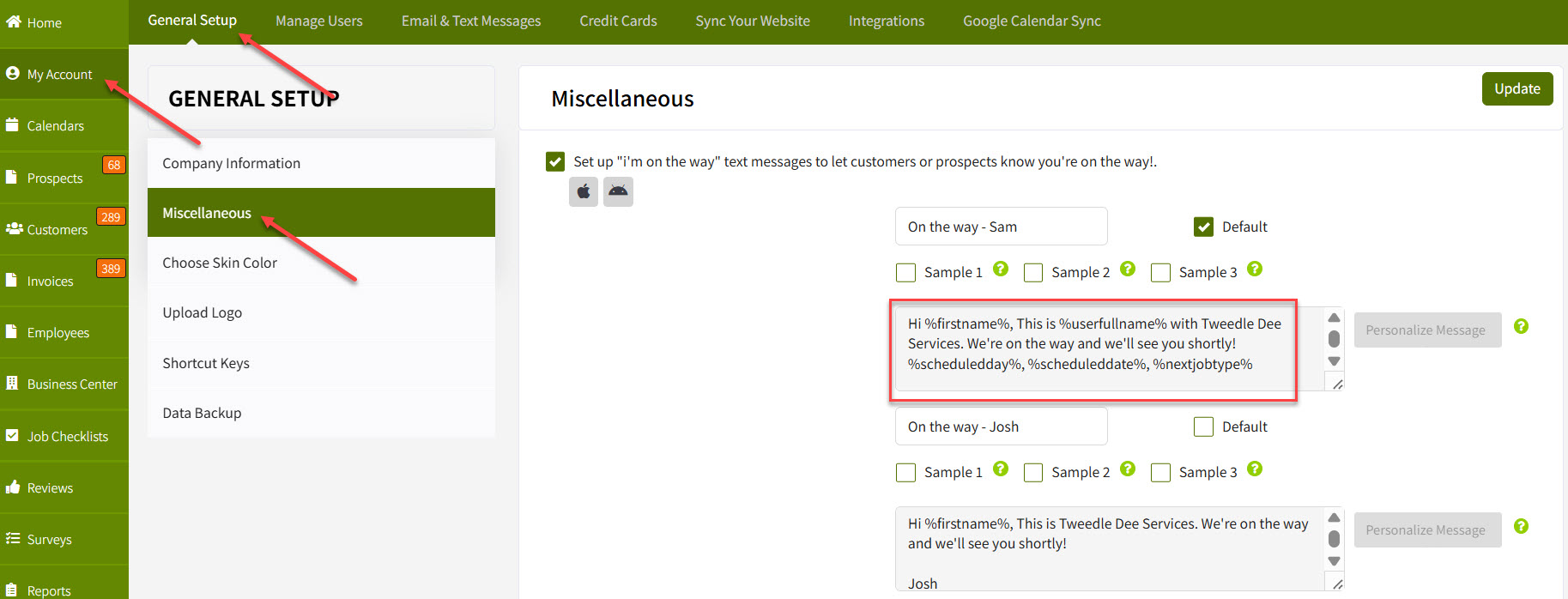 And that's it! Make your edits, click update, and your "I'm on the way" message in the app has been changed.